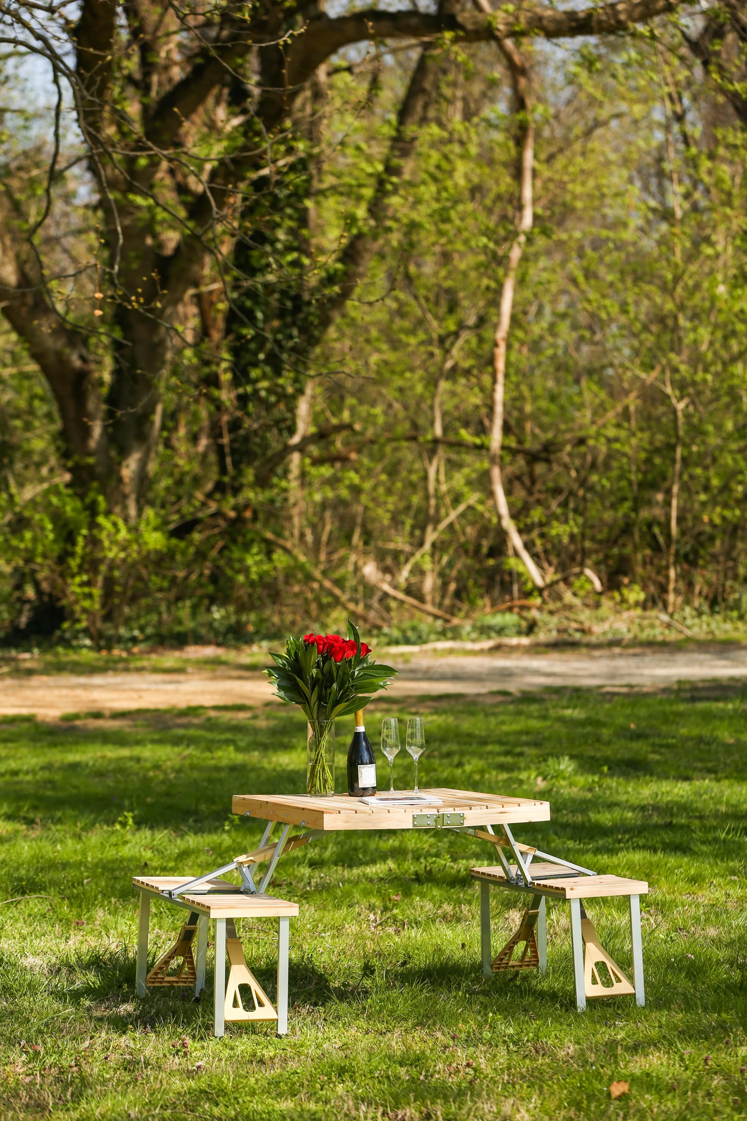For this surprise proposal at Jones Point Park I provided the photography as well as the setup which included the picnic table, fresh roses, and champagne glasses. The personalized book and bottle of champagne were provided by the client which I arranged for pickup. I had setup the picnic at a private location in the park where the couple stumbled upon the picnic! After the surprise proposal they enjoyed the picnic and Champagne!